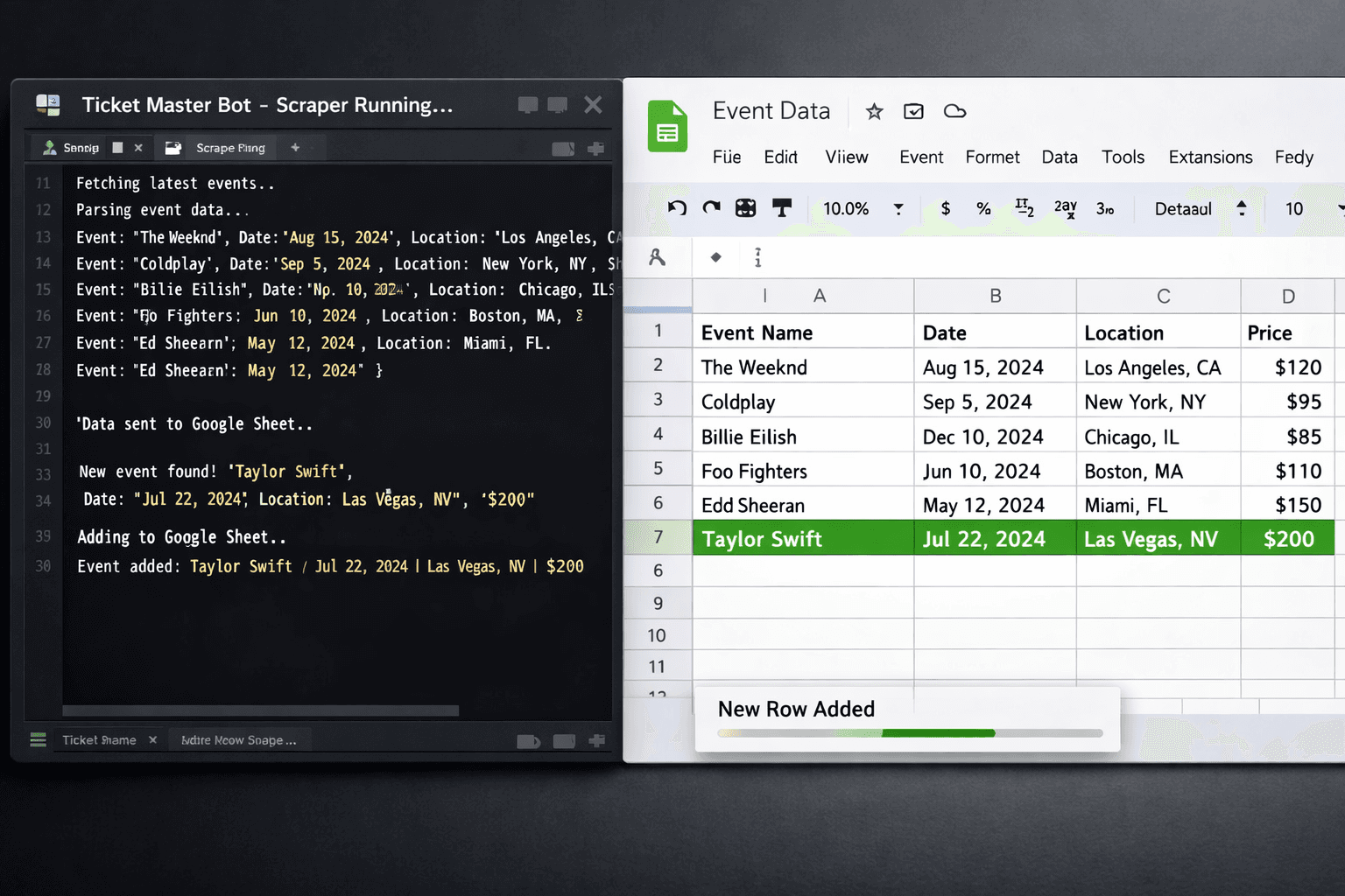 Python · TicketMaster API · Google Sheets API